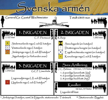 ![]() Befälhavare för landtrupperna: General greve Gustaf Wachtmeister |